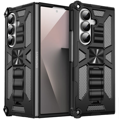 For Samsung Z Fold7 Case Shockproof Modern w/ Stand Metal Plate + Tempered Glass