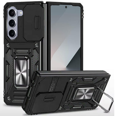 For Samsung Z Fold7 Case Sliding Lens with Magnetic Ring Stand + Tempered Glass