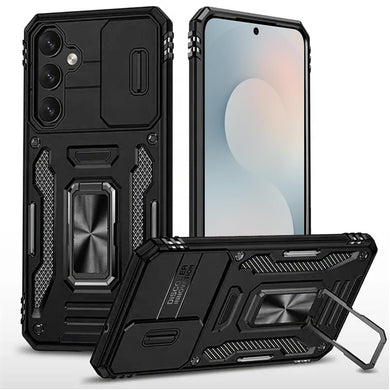 For Samsung S25/S24 Case Slide Lens Cover Magnetic Ring Stand + Tempered Glass