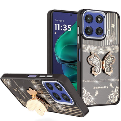 For Motorola Edge 2025 Case with Butterfly Grip Stand and Mini Faux Crystals