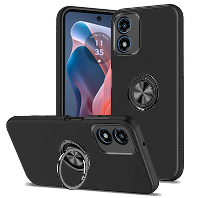 For Moto G Play 2024 Case Ring Magnetic Kickstand Hybrid Cover + Tempered Glass