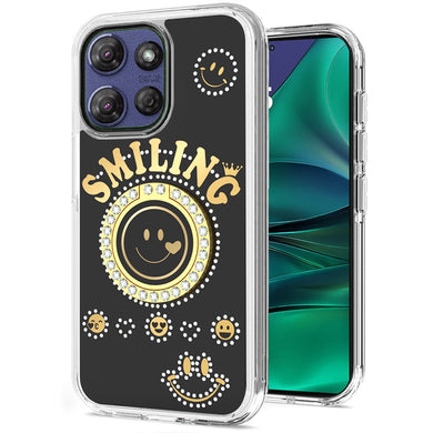For Moto G 2025 Case Diamond Studs Smiling Face Bling Ring + Tempered Glass