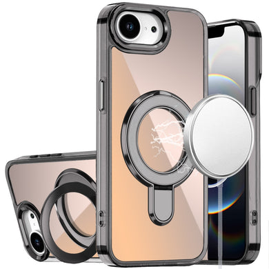 For iPhone 16e Case Radiant Chrome Cover Magnetic Circle Stand + Tempered Glass