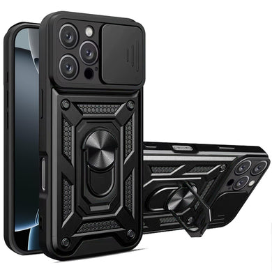 For iPhone 16 PRO MAX Case Slide Lens Cover Magnetic Ring Stand + Tempered Glass