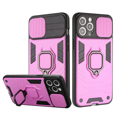 For iPhone 12/12 Pro Case Sliding Lens with Magnetic Ring Stand + Tempered Glass