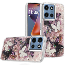 For Moto G 2025 Case Epoxy Glitter w/ 3D Beaded Butterflies + Tempered Glass