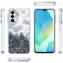 For Samsung A16 5G Case Feathers Glitter Epoxy Cute Phone Cover + Tempered Glass