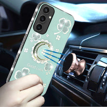 Glitter Four Leaf Clover Design All Around Crystal Studded Ring Stand Cover + Tempered Glass Screen Protector