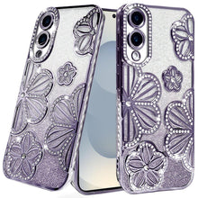 For Samsung S25 Edge Case Bling Floral 3D Glitter Phone Cover + Tempered Glass