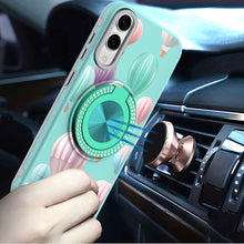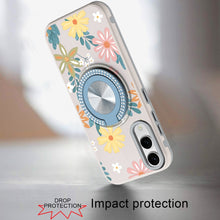 Printed Design Rugged Hybrid with Magnetic Bling Ring Stand + Tempered Glass Screen Protector