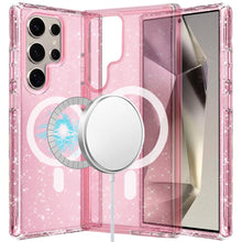 For Samsung S25 Ultra Case Magnetic Circle Glitter Translucent + Tempered Glass