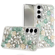 For Samsung S24/S25 Case Full Rhinestone 3D Rose Bling Cover + Tempered Glass